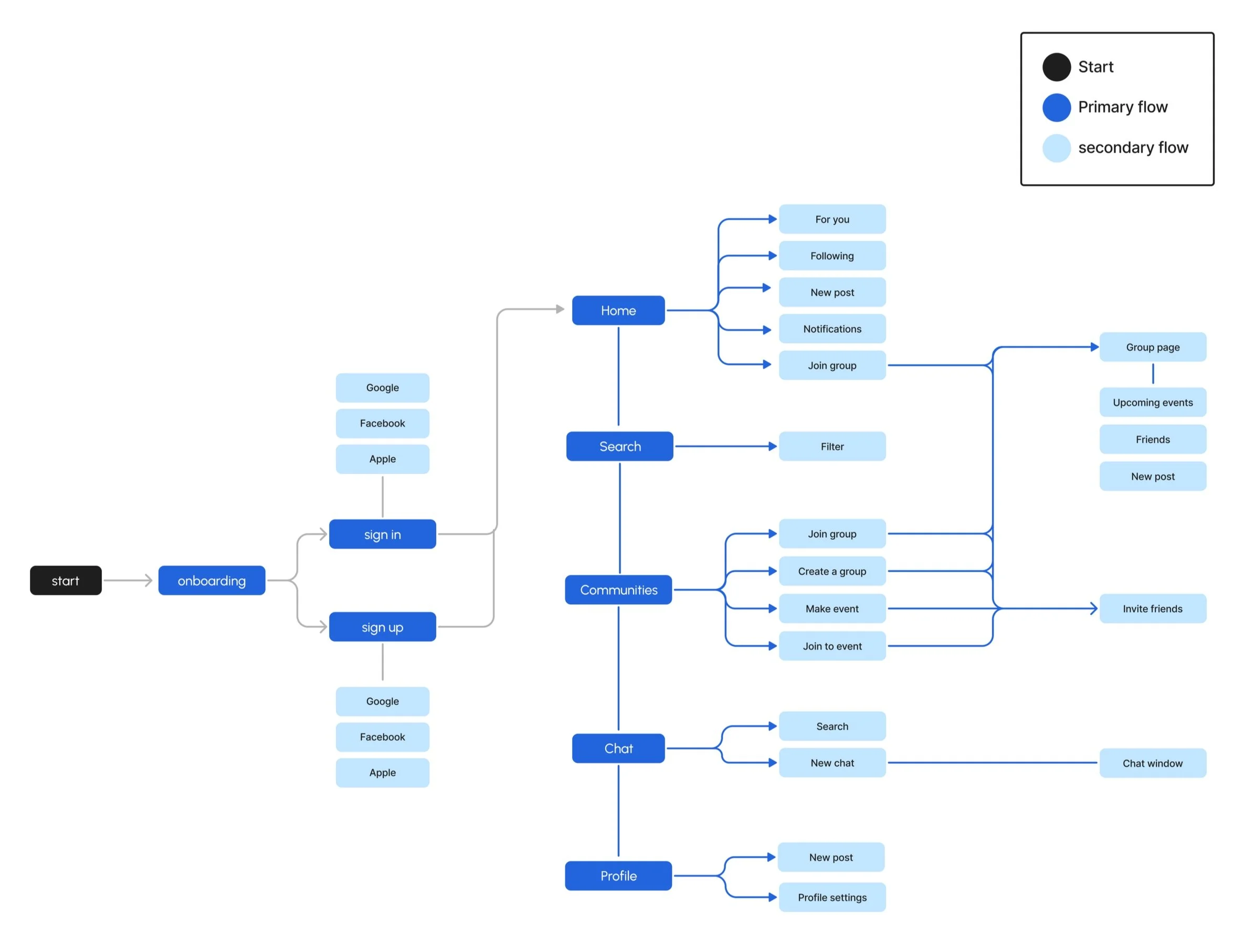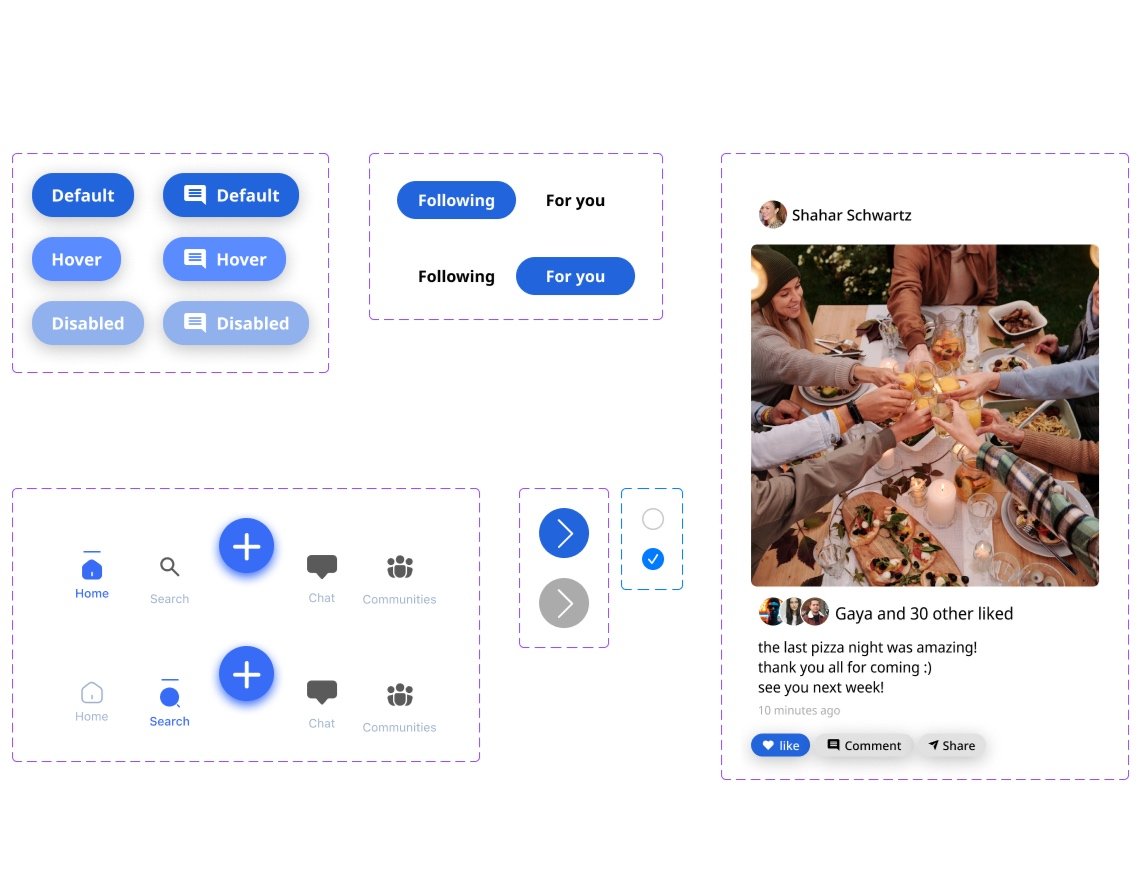 I started by sketching out low-fidelity wireframes to visualize the user journey. My goal was to make sure the onboarding flow felt natural and easy to follow, guiding users step by step without overwhelming them. For the home feed, I balanced personalized recommendations with content from followed communities, ensuring a mix of discovery and familiarity.