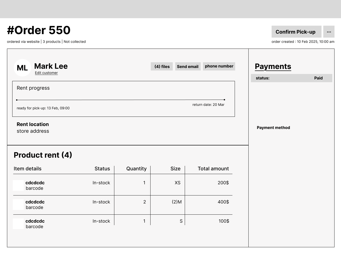 Order Return Screen – Focused on providing employees with the most essential information at the moment of order return. What details are critical for processing the return? What actions must the employee take to complete the rental process and credit the equipment?