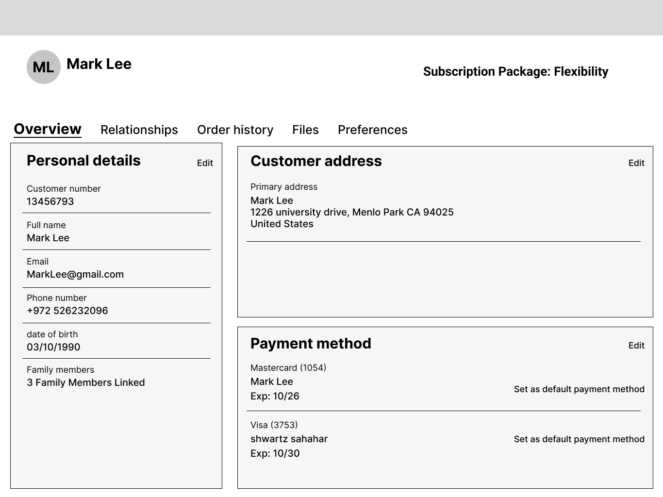 Customer Details Screen – A centralized hub for all customer history and interactions within our system, allowing employees to quickly access relevant information."